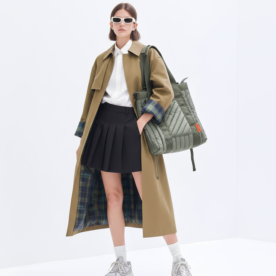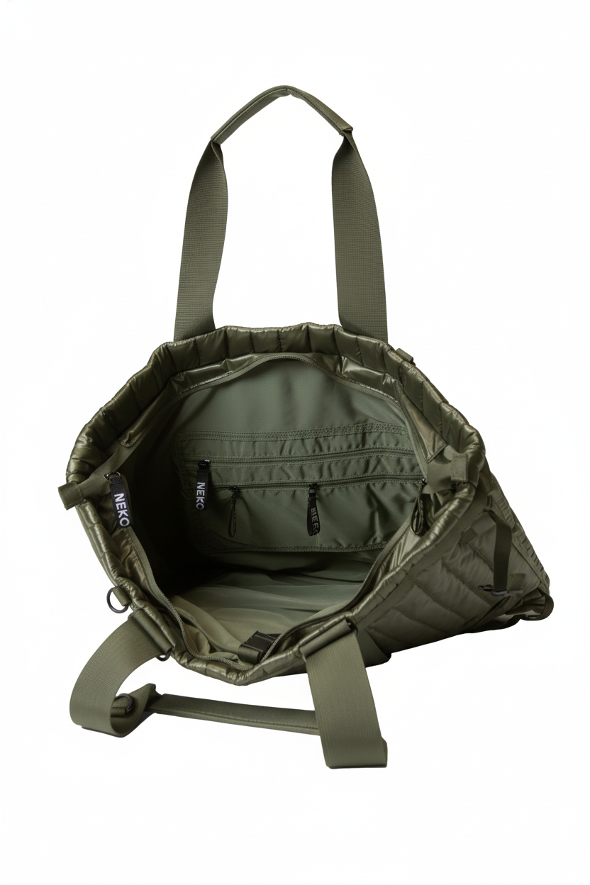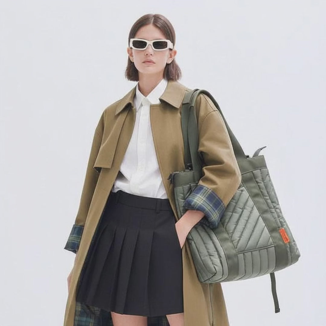 The NN_VRT quilted vertical tote is the ideal choice for both business and personal travel. Versatile and fashionable, it can be worn on the shoulder for everyday use and transformed into a functional backpack in the blink of an eye. Simply undo the snaps on the back to adjust the strap length to your needs.